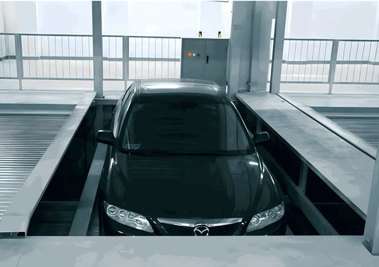 Equipped with a vertical transportation system for efficient vehicle parking or turning,...